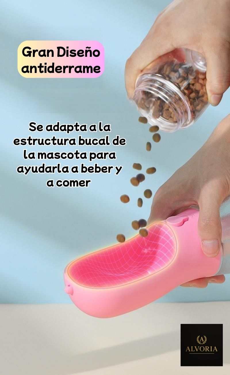 Botella 3 en 1 para Perros | Agua, Comida y Bolsas | Antiderrame