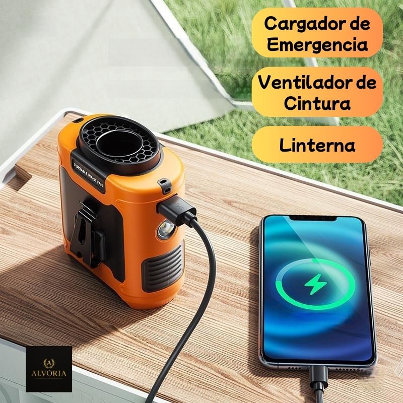 Ventilador Portátil de Cintura con Power Bank y Luz LED – ALVORIA™ 3 en 1