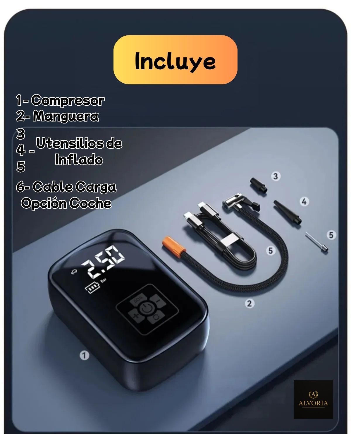 Compresor de Aire Eléctrico Portátil ALVORIA™ | Hinchador Inalámbrico para Coche, Moto, Bicicleta y Balones