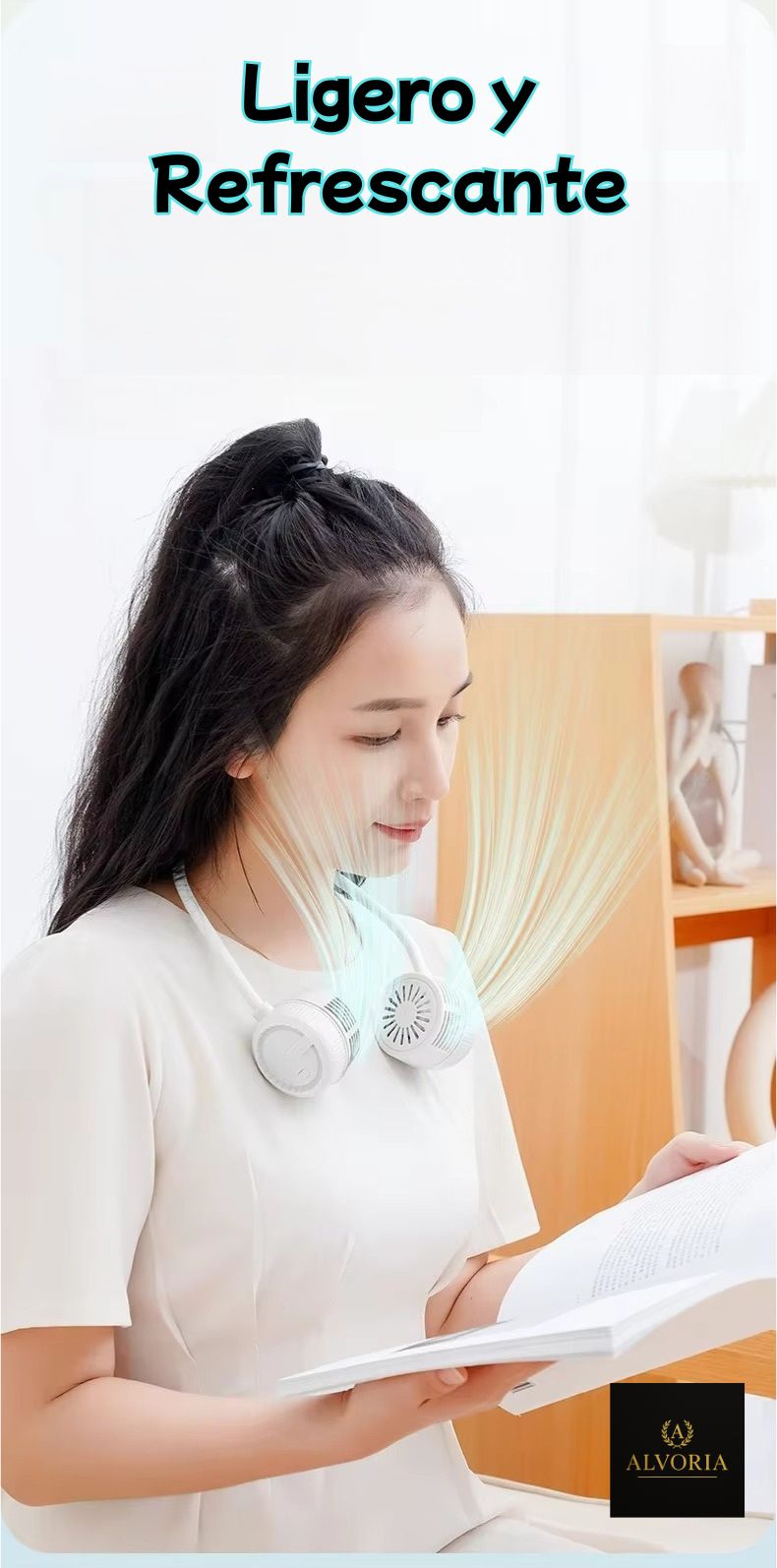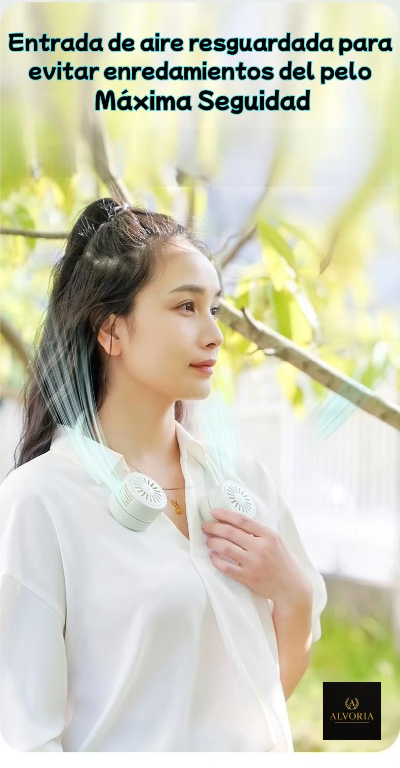 ¿Te agobia el calor en verano o durante el ejercicio? El Ventilador de Cuello Sin Aspas ALVORIA™ es tu nuevo aliado para refrescarte con estilo y comodidad.